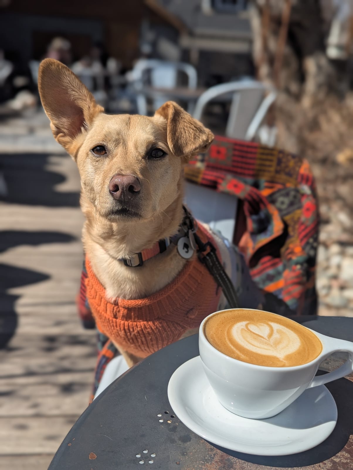 A coffee shop for dog lovers; A dog park for coffee lovers.